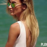 Petite blonde MILF beauty Cara Mell posing nude on the beach